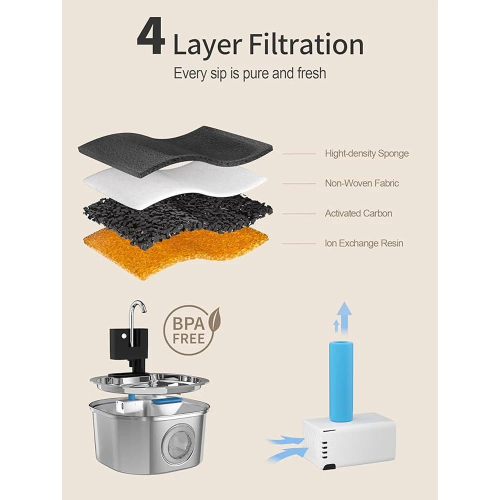 3.2L Wireless Stainless Steel Pet Water Feeder Auto Cat Fountain faucet Smart Dog Water Dispenser Visual Window Drinking Bowl